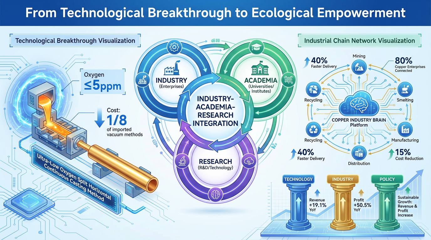 Mô hình đổi mới trong ngành ống đồng đang chuyển từ "R&D một điểm" sang "tích hợp hệ thống". " Sự hợp tác thành công giữa Jiangxi Naile Copper Co., Ltd. và Đại học Nam Xương chứng tỏ rằng sự tích hợp sâu giữa ngành-học viện-nghiên cứu đòi hỏi phải thiết lập ba cơ chế: kết hợp nhu cầu, tích hợp tài nguyên và chia sẻ lợi ích. Để giải quyết thách thức của ngành trong việc đạt được hàm lượng oxy ≤5ppm trong ống đồng dùng cho chất bán dẫn, nhóm liên doanh giữa trường đại học và doanh nghiệp đã phát triển "phương pháp đúc liên tục theo chiều ngang phân tách lượng oxy cực thấp", giảm chi phí xuống còn 1/8 so với phương pháp chân không nhập khẩu. Tuy nhiên, để giải phóng giá trị của bước đột phá công nghệ này đòi hỏi sức mạnh tổng hợp của chuỗi công nghiệp—Naile Copper đã sử dụng nó để tham gia vào chuỗi cung ứng chip toàn cầu, tăng phí xử lý lên gấp sáu lần.