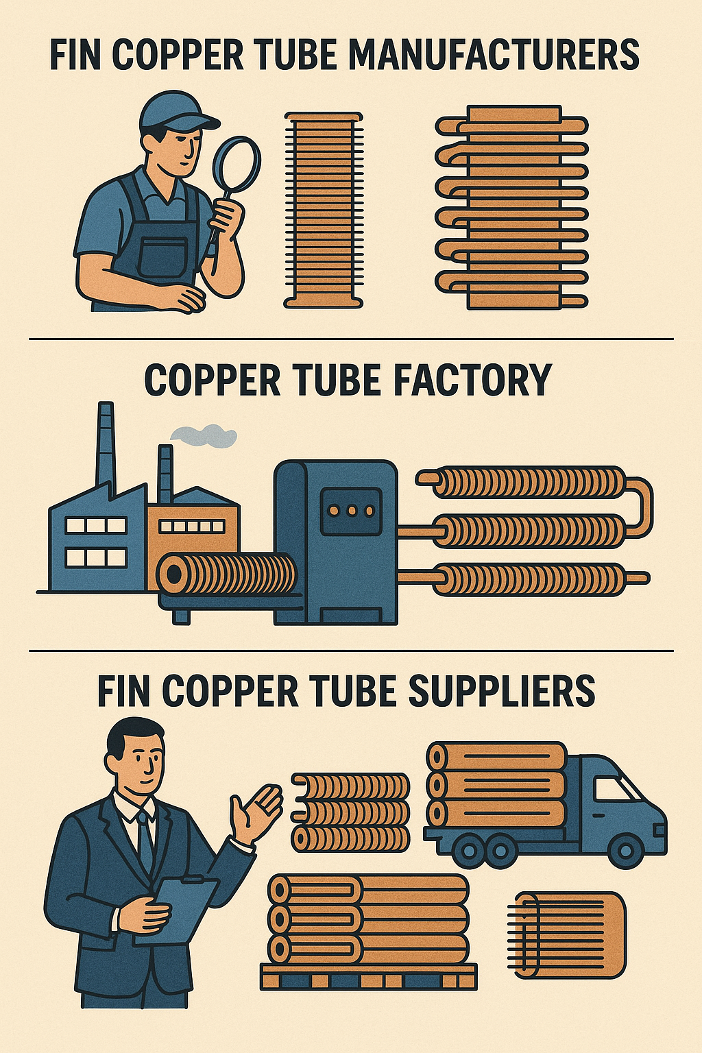 Nhà sản xuất ống đồng vây chịu trách nhiệm sản xuất các ống đồng chất lượng cao được thiết kế đặc biệt cho các ứng dụng trao đổi nhiệt. Các nhà sản xuất này làm việc với kỹ thuật sản xuất tiên tiến để tạo ra những chiếc ống bền, hiệu quả và tiết kiệm chi phí. Vai trò của họ trong chuỗi cung ứng là rất quan trọng vì họ đảm bảo rằng nguyên liệu đáp ứng các tiêu chuẩn ngành và thông số kỹ thuật của khách hàng.